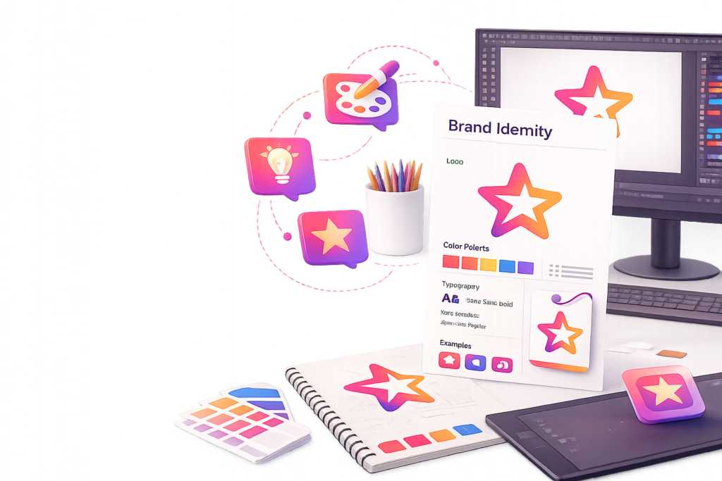 We create complete brand identities, including logos, color systems, and visual guidelines. Alongside that, we design supporting assets such as social media visuals and marketing materials to keep your brand consistent across all platforms.